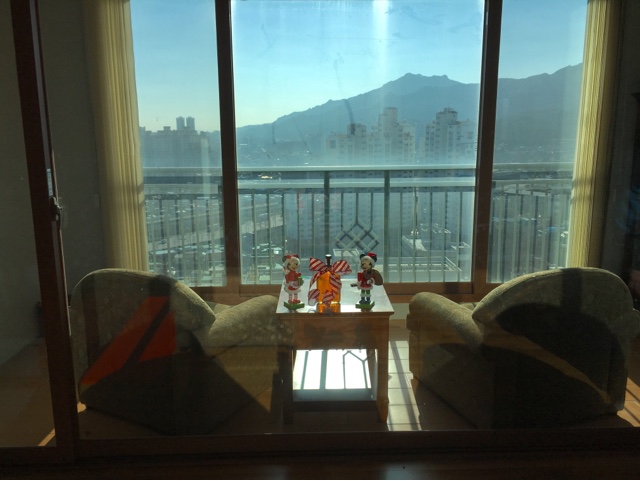This was a big deal. In Korean homes, you do not enter until your shoes are removed. In our lease, we have agreed to not wear shoes that have been worn outside in the house. But when Sweet Baboo comes home, with his arms full of Army stuff, and boots laced up to his shins, the removal process has been tedious. We got him a stool to make the process a bit easier, and he was thrilled!